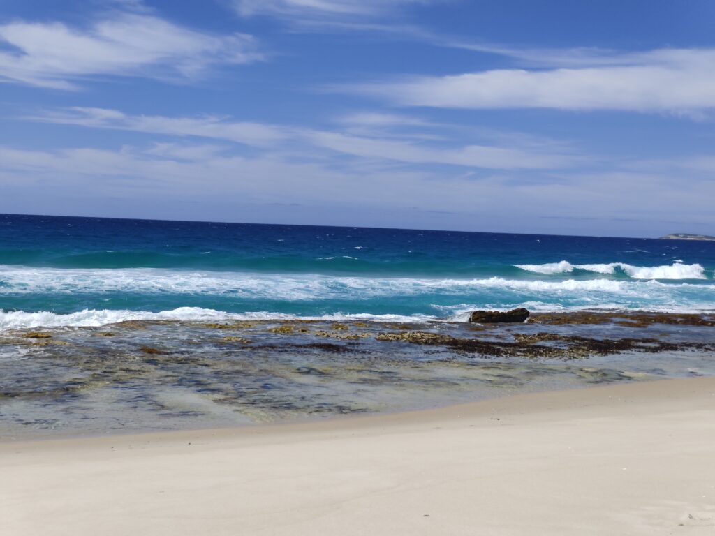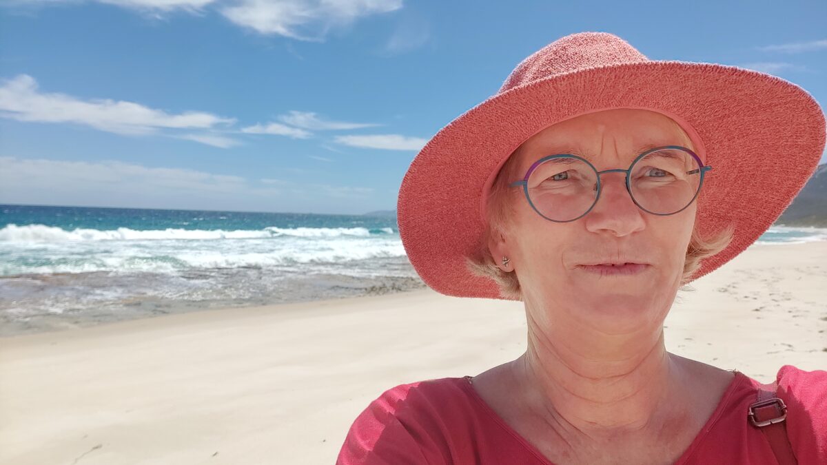 Heute Morgen machten wir einen Zwischenstopp an einem Strand, Normans Bay. So windig, dass mein neuer Hut mit Schutzfaktor 50+ wegzuwehen drohte. Menschenleer. Nach wenigen Minuten waren wir paniert, denn wir hatten reichlich von der Sonnencreme Gebrauch gemacht 😊
