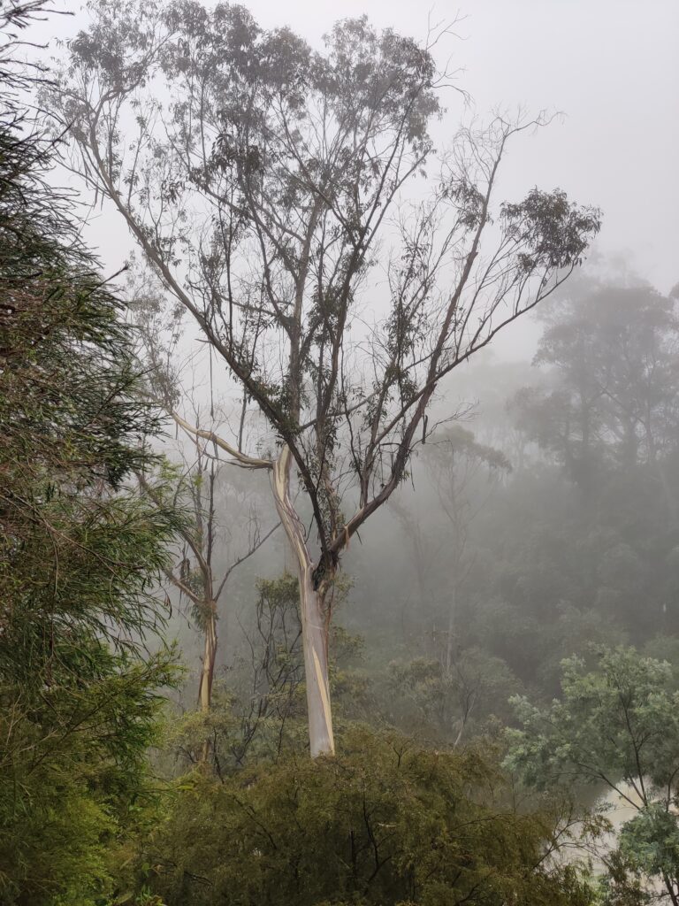 Gestern war ein regnerischer Tag, Dauerregen. Und ich war gebucht auf eine Ausflugstour, deren Höhepunkte im „Landschaft gucken“ bestanden. Aber es waren keine Landschaften zu sehen. Tja. Obwohl ich Regenjacke und Regenschirm dabeihatte, waren nach sehr kurzer Zeit Schuhe und Füße nass. Andere Leute aus der Gruppe hatten keine Hemmungen Regenwasser von ihrem Schirm auf anderer Leute Füße tropfen zu lassen, unangenehm. Und kalt wurde mir auch langsam. Gegen die Kälte konnte ich etwas tun, ich kaufte mir im Souvenirshop in den Blue Mountains den einzigen Pullover, der passte. Ha, teuer, aber was soll frau machen? Wie ich später las, dafür mit 50 % Seawool. Wenn das den hohen Preis nicht rechtfertigt, dann weiß ich es auch nicht 😉