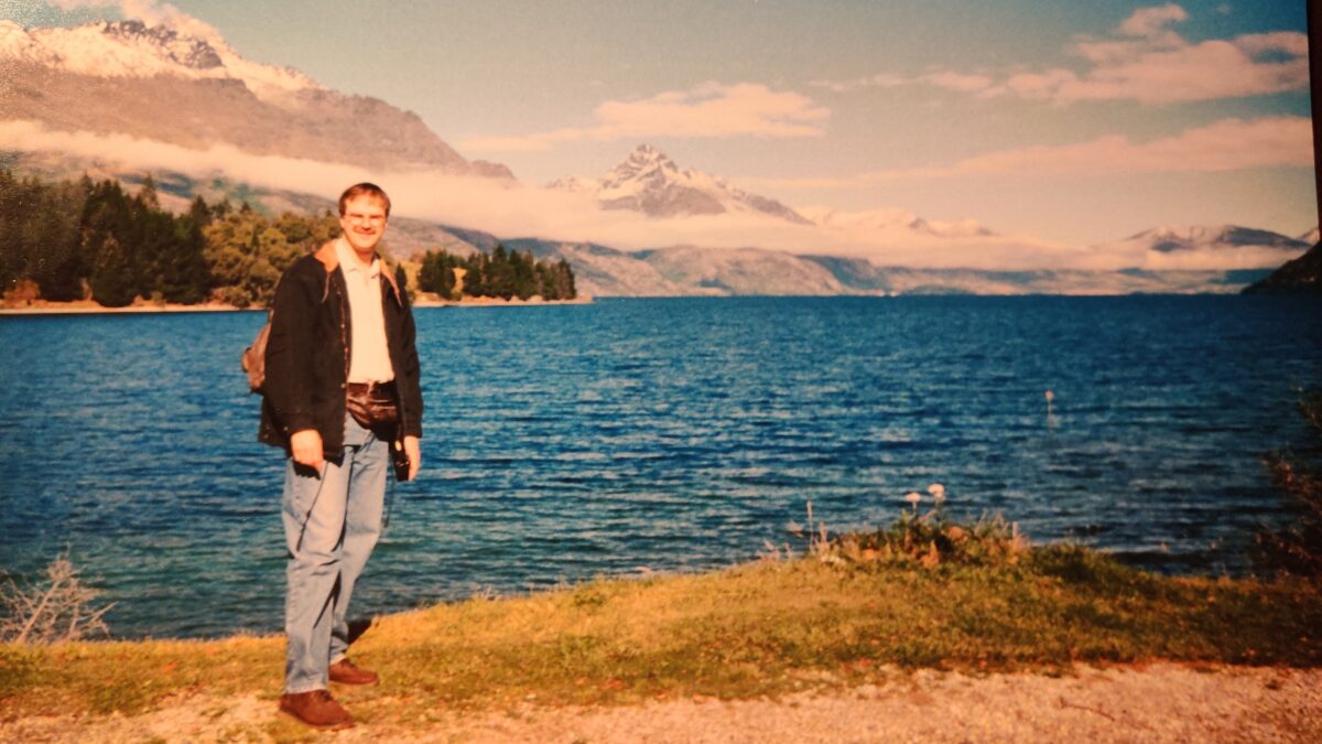 Das Bild von Klaus Peter zeigt ihn fröhlich während unseres Neuseelandurlaubs im Jahr 1996. Da war ich in der 24. oder 25. Woche schwanger und noch lastete keine Verantwortung auf seinem Schultern. Ich verdiente genug für mich selbst und er sowieso. Aber dann, mit Kind und Frau, die bestenfalls halbtags arbeitet?