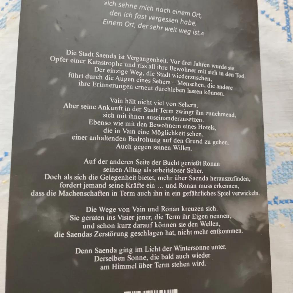 Ich füge den Klappentext unten an. Im Wesentlichen geht es um das Recht auf Wahrheit, auch wenn diese tödlich sein kann. Machtmissbrauch. Freiheit des Menschen selbst zu entscheiden. Alles angesiedelt in, ja, wo? Einem Stadtstaat? Insel! Seher, Magie, Freundschaft. Vertrauen, oder eben auch nicht.