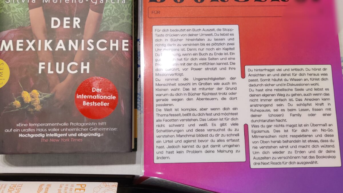 Wunderbares Geschenk an mich selbst. Denn das Bookoskop passt auf mich vom ersten bis zum letzten Satz 🥳