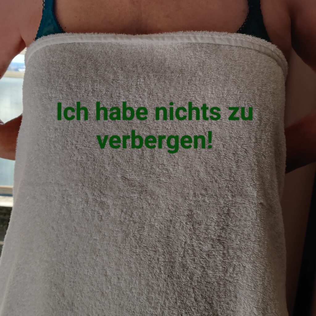 „Ich habe nichts zu verbergen“, sagte sie mit fester Stimme und schaute ihrem Gegenüber direkt in die Augen. Sie zeigte keine Angst, obwohl die Situation zum Fürchten war. Hier, in der Damenumkleide vom Freibad, war sie um diese Zeit ganz allein, das Bad war wegen des schlechten Wetters eh nur schlecht besucht gewesen. Sie schwamm gerne abends.