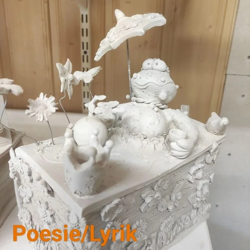 Die Kunstwerke von Frau Schönberg bestehen aus Ton. Wegen der damit verbundenen Zerbrechlichkeit ist eine Zusendung im Gewinnfall ausgeschlossen. Diese können nur persönlich im Rahmen der Preisverleihung oder danach in Bamberg in Empfang genommen werden.