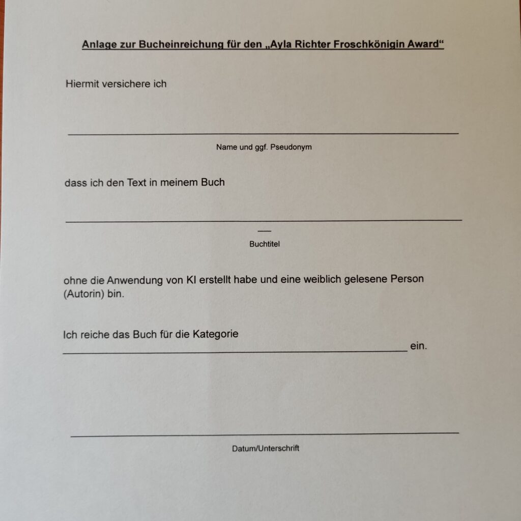 Teilnahmebedingungen „Ayla Richter Froschkönigin Award“