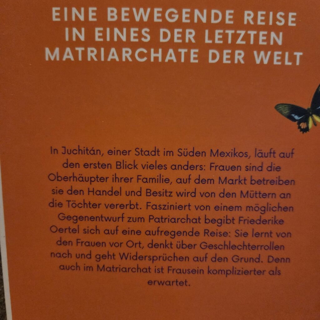 Aber dieses Buch ist anders, der Kauf hat sich voll gelohnt! Wie bei der Autorin anscheinend ihre Reise nach Juchitan, einer Stadt, in der das Matriachat noch herrschen soll.