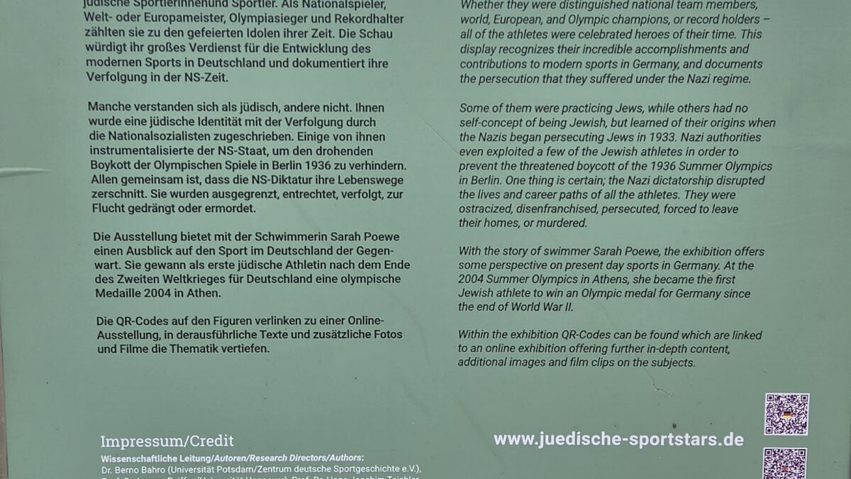 Ich habe die kurzen Lebensgeschichten der Menschen gelesen, die aussahen wie ihre Nachbarn bis sie nicht mehr „ins Stadtbild passten“. Trotz deutschem Pass. Mit deren sportlichen Erfolgen sich die Regierenden schmückten und die so schmählich von ihren Vereinen im Stich gelassen wurden. Ich habe absichtlich Fotos von den Töchtern gemacht. Töchtern, die ins Stadtbild passten bis sie den gelben Stern tragen mussten.
